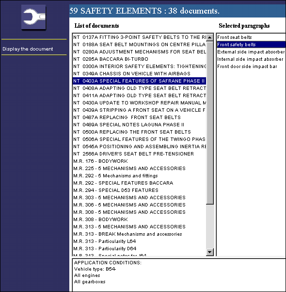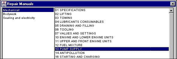 - List of documents: list of Workshop Repair Manuals