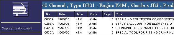 The Vehicle, After-Sales type, Engine, Gearbox buttons: