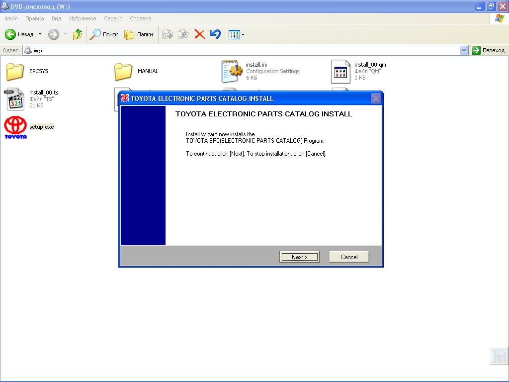 1. ÇÀÏÓÑÒÈÒÅ SETUP.EXE ÈÇ ÊÎÐÍß ÄÈÑÊÀ TOYOTA INSTALL EPC3