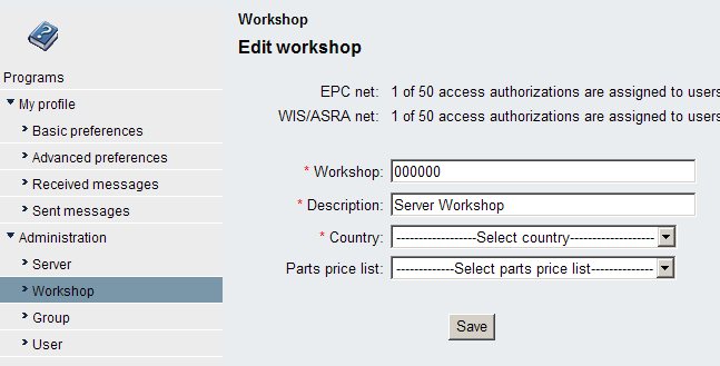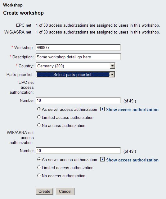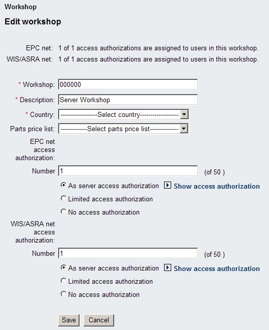 By default when you install EWA the system will run in a simple administration mode which restricts you to exactly one workshop. This workshop automatically mirrors all the access rights from the Daimler server access authorizations. You can change some attributes (like Workshop No., Description,...), but that's it basically. This workshop of course can contain an infinite number of groups which allow you to distribute fine grained access rights to users in these groups.