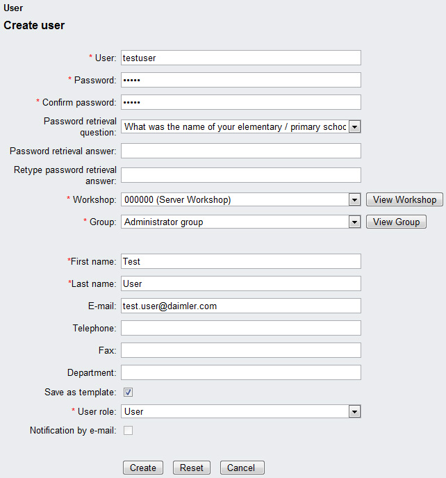 Once you login to the system the first time on a clean and fresh installed system, you can only login as the server administrator - the only user currently known in EWA. You will be asked for a new password for this user. We highly recommend that you immediately after a successful login additionally change the properties of this administrator (like real name, email address,...). You should also modify the Workshop number of the default workshop to the correct one of your physical workshop and might also like to change the name of the default group in the system.