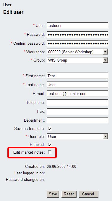Each user which is able to maintain Market Notes will just be able to edit Market Notes. The usual User Notes interface will be re-used to edit Market Notes. Please take a look to the EPC online help for further details. Each user which has the permission to edit Market Notes is editing the notes of country where the user is assigned to.