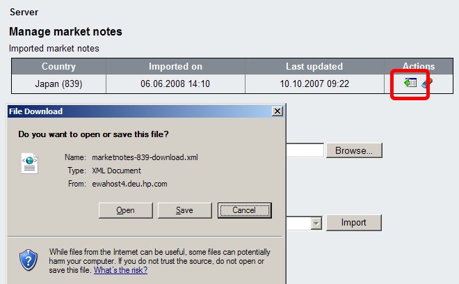 To export Market Notes for distribution to EWA installation sites you need to go to the Market Notes maintenance screen located at "Administration -> Server -> Maintain Market Notes". With the Market Notes editorial support option enabled you'll see a additional column in the overview table to export the market notes data. click on the export icon to export the data as XML file.