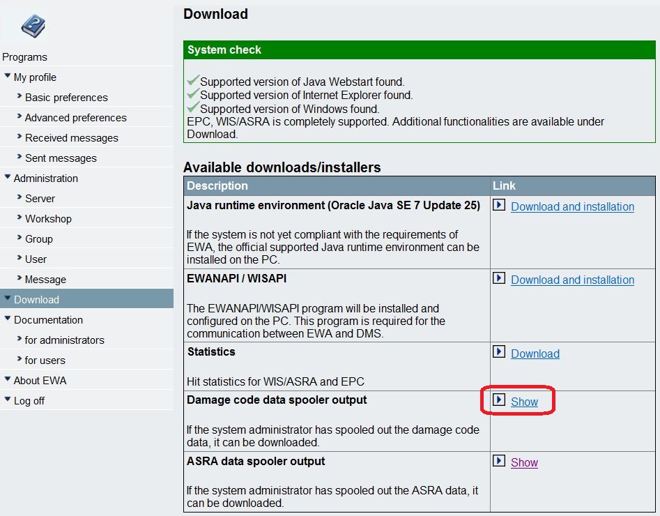 Version of Autoline 8.3 and above provide an out of the box support of EPC respectively WIS/ASRA via EWANAPI. The tradeoff is that it currently expects some files to be located in the user profile directory. If those files are not present Autoline 8.3 will not enable the EPC or WIS/ASRA buttons. The best way to install EWANAPI on user's PCs is by use of the following settings - which have to be set on the EWA server inside the file [EWA-HOME]\clientapps\ewanapi\ewanapi.ini: