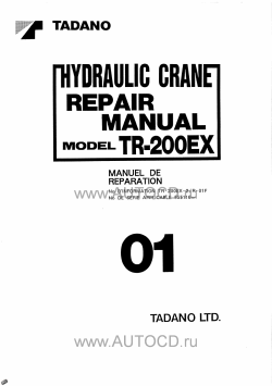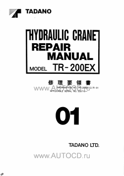 Заводская инструкция по ремонту крана Тадано - Tadano Hydraulic Crane TR-200EX-2 содержит подробную информацию о сборке и разборке агрегатов, процедур диагностики, электрические схемы, моменты затяжек и др.