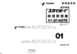 Заводская инструкция по ремонту крана Тадано - Tadano Aerial Platform AT-105TE-1 содержит подробную информацию о сборке и разборке агрегатов, процедур диагностики, электрические схемы, моменты затяжек и др.