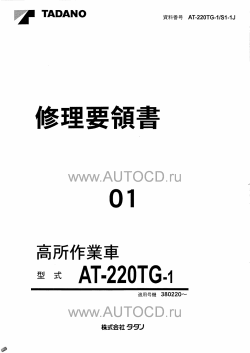 Заводская инструкция по ремонту крана Тадано - Tadano Aerial Platform AT-220TG-1 содержит подробную информацию о сборке и разборке агрегатов, процедур диагностики, электрические схемы, моменты затяжек и др.